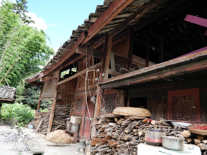 圖2?得妥鎮(zhèn)北頭村2座典型的木結(jié)構(gòu)建筑破壞情況(石-木結(jié)構(gòu)和穿斗木結(jié)構(gòu))